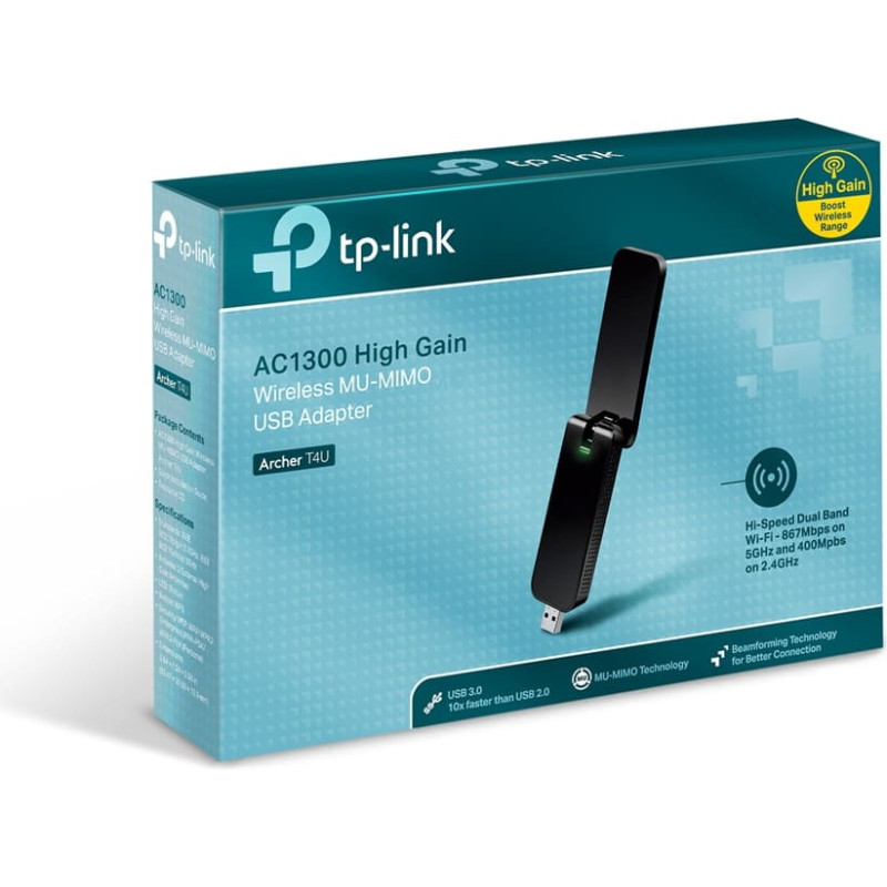 | „Wi-Fi“ dažnių juosta | Dviguba juosta (2,4 GHz / 5 GHz) | | Dažnių diapazonas | 2,4 - 5 GHz | | „Wi-Fi“ standartas | Wi-Fi 5 (802.11ac) | | Wi-Fi standartai | 802.11a, 802.11b, 802.11g, Wi-Fi 4 (802.11n), Wi-Fi 5 (802.11ac) | | WLAN duomenų perdavimo grečio palaikymas | 11,54,300,400,867 Mbit/ai | | Moduliacija | 16-QAM, 64-QAM, 256-QAM, CCK, DBPSK, DQPSK, OFDM | | Apsaugos algoritmų palaikymas | 64-bit WEP, 128-bit WEP, WPA-PSK, WPA2-PSK | | Vidinis | Ne | | Taikoma | Kompiuteris / knyginis kompiuteris | | Produkto spalva | Juoda | | Antena | Taip | | Antenos konstrukcija | Išorinis | | Antenos krypties tipas | Nekryptinis | | Perdavimo galia (CE) | 20 dBm | | Perdavimo galia (FCC) | 20 dBm | | WPS paspaudžiamasis mygtukas | Taip | | LED indikatoriai | Energija | | Valdymo režimai | Infrastruktūros režimas | | Palaikomos „Windows“ operacinės sistemos | Windows 10, Windows 10 Education, Windows 10 Education x64, Windows 10 Enterprise, Windows 10 Enterprise x64, Windows 10 Home, Windows 10 Home x64, Windows 10 IOT Core, Windows 10 IoT Enterprise, Windows 10 Pro, Windows 10 Pro x64, Windows 10 x64, Windows 11, Windows 11 Enterprise, Windows 11 Enterprise x64, Windows 11 Home, Windows 11 Pro, Windows 11 x64, Windows 7, Windows 7 Enterprise, Windows 7 Enterprise x64, Windows 7 Home Basic, Windows 7 Home Basic x64, Windows 7 Home Premium, Windows 7 Home Premium x64, Windows 7 Professional, Windows 7 Professional x64, Windows 7 Starter, Windows 7 Starter x64, Windows 7 Ultimate, Windows 7 Ultimate x64, Windows 7 x64, Windows 8, Windows 8 Enterprise, Windows 8 Enterprise x64, Windows 8 Pro, Windows 8 Pro x64, Windows 8 x64, Windows 8.1, Windows 8.1 x64, Windows XP, Windows XP Home, Windows XP Home x64, Windows XP Professional, Windows XP Professional x64 | | Palaikomos MAC operacinės sistemos | Mac OS X 10.10 Yosemite, Mac OS X 10.11 El Capitan, Mac OS X 10.12 Sierra, Mac OS X 10.13 High Sierra, Mac OS X 10.14 Mojave, Mac OS X 10.15 Catalina, Mac OS X 10.7 Lion, Mac OS X 10.8 Mountain Lion, Mac OS X 10.9 Mavericks | | Palaikoma operacinė sistema „Linux“ | Taip | | Darbo temperatūros diapazonas (TT) | 0 - 40 °C | | Sandėliavimo temperatūros norma (T-T) | -40 - 70 °C | | Darbo santykinės drėgmės diapazonas | 10 - 90% | | Sandėliavimo santykinis drėgmės diapazonas | 5 - 90% | | Plotis | 92,5 mm | | Ilgis | 31,6 mm | | Aukštis | 13,9 mm | | Pakuotės plotis | 207 mm | | Pakuotės gylis | 148 mm | | Pakuotės aukštis | 42 mm | | Paketo svoris | 180 g | | Šaltinis CD | Taip | | Greito diegimo vadovas | Taip | | Atitikties sertifikatai | CE, Federalinė ryšių komisija (FCC), RoHS | | Darniosios sistemos (DS) kodas | 85176990 | | MU-MIMO | Taip | | Tvarumo reikalavimų laikymasis | Taip | | Ryšio technologija | Bevielis | | Priimančioji sąsaja | USB | | Sąsaja | WLAN | | USB prievadų skaičius | 1 | | USB versija | 3.2 Gen 1 (3.1 Gen 1) | | Didžiausias duomenų perdavimo greitis | 867 Mbit/ai | | „Wi-Fi“ | Taip |