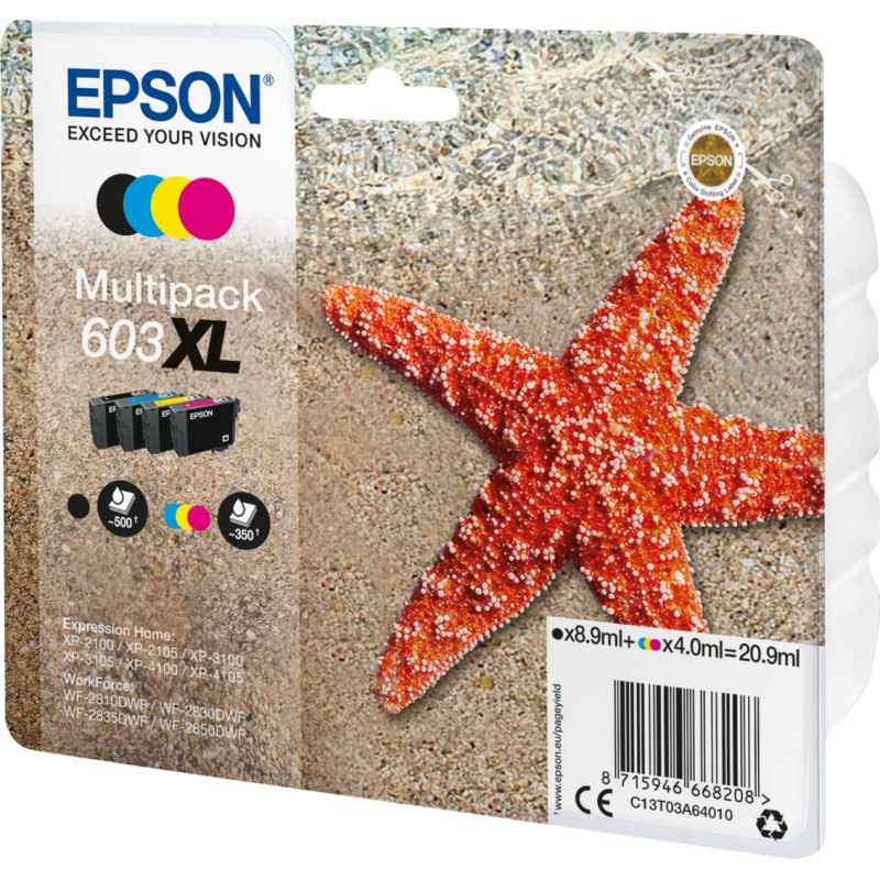 Epson C13T03A64010. Rašalo kasetės tipas: Didelė (XL) išeiga, Juodo rašalo kiekis: 8,9 ml, Tiekimo tipas: Grupinė pakuotė, Spalvoto rašalo kiekis: 4 ml, Spausdinimo spalvos: Juoda, Žydras, Rausvai raudona, Geltona, Kiekis pakuotėje: 1 vnt