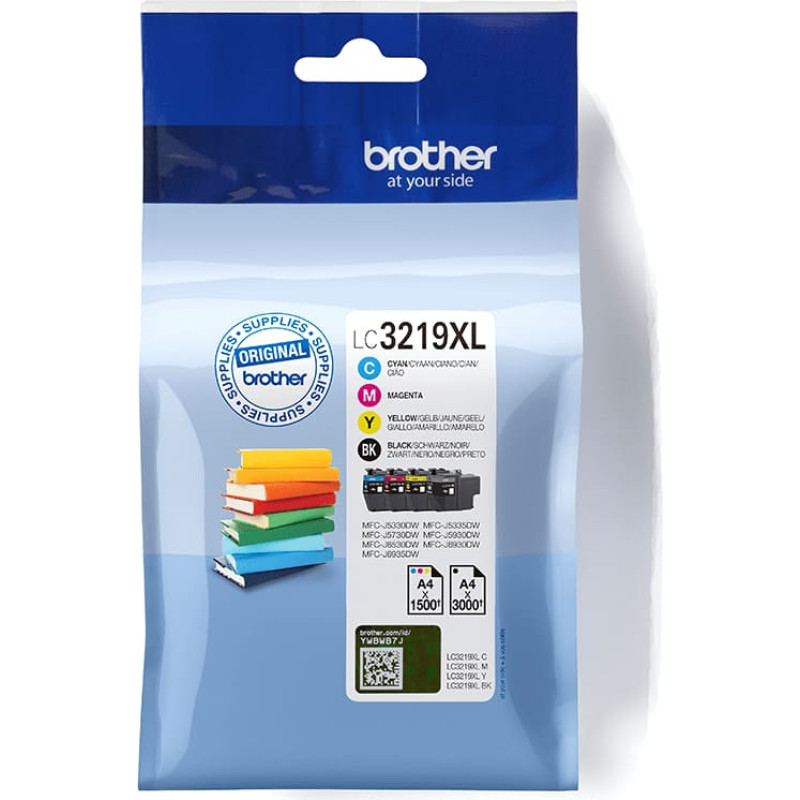 Brother LC3219XLVALBP. Tiekimo tipas: Grupinė pakuotė, Spausdinimo spalvos: Juoda, Žydras, Rausvai raudona, Geltona, Kiekis pakuotėje: 4 vnt