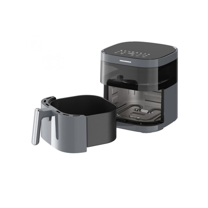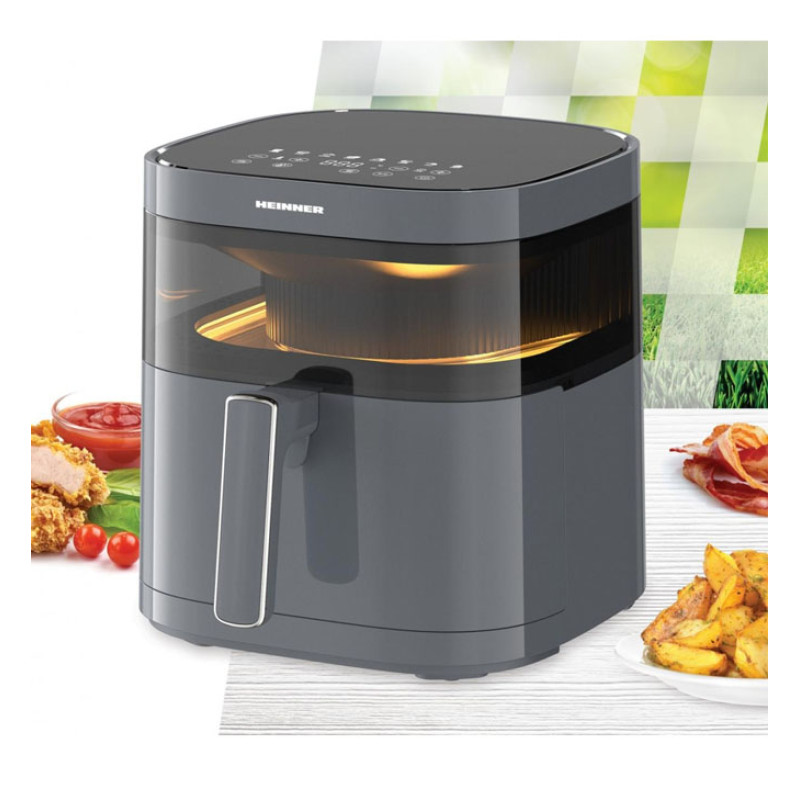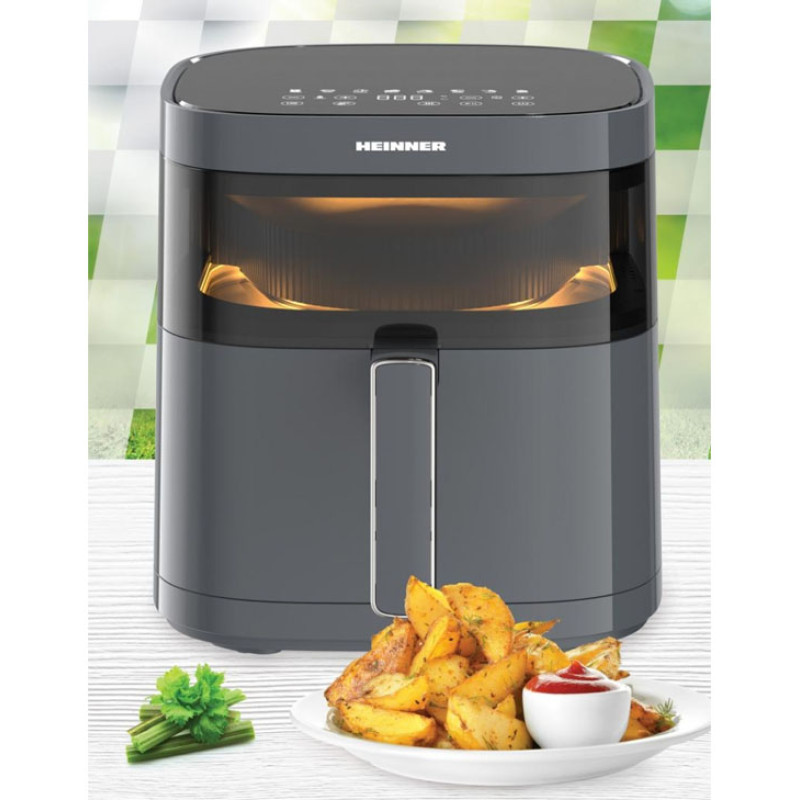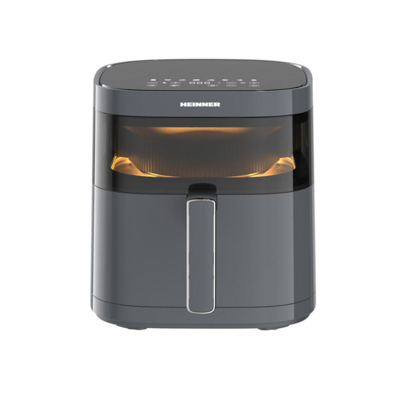 Karšto oro gruzdintuvė Heinner DualHeat HAF-B6GRY17LG, 1700W, krepšelio talpa: 5.7L, skaitmeninis ekranas, dvigubo kaitinimo technologija, metalinė vidinė kamera, temperatūros diapazonas: 80-200°C, laikmatis: iki 60 min, 8 iš anksto nustatytos programos, nuimamas krepšelis, stebėjimo langas, vidinis apšvietimas, automatinis išsijungimas, spalva: antracitas