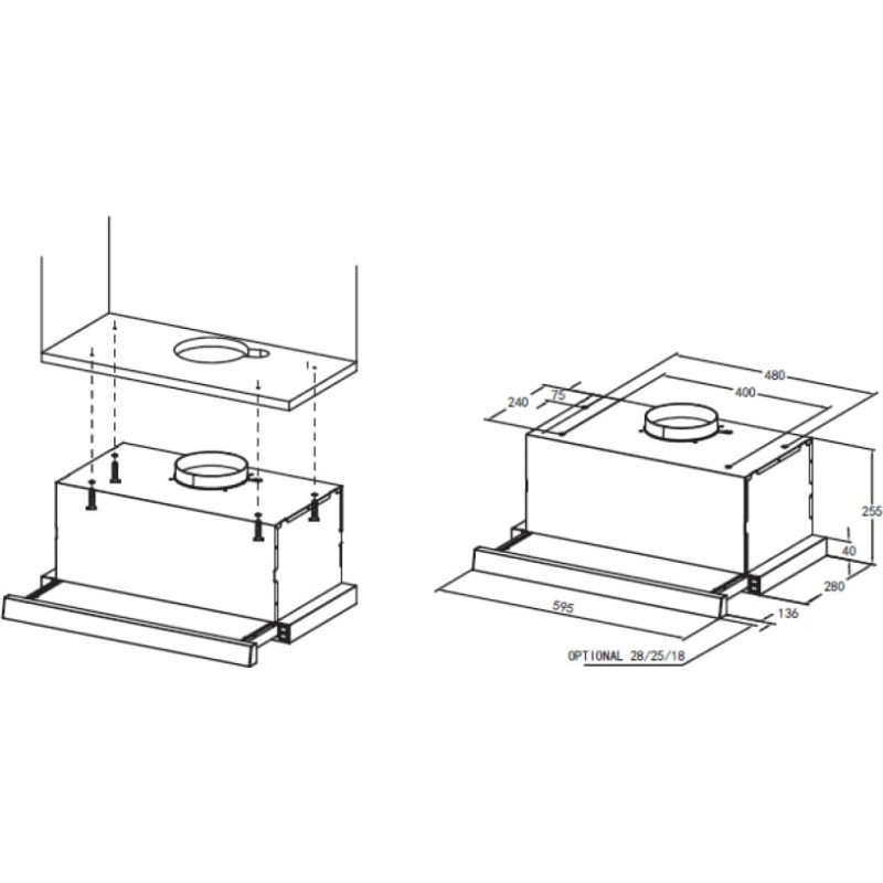 | Montavimas | Teleskopinis — montuojamas po spintelės dugnu |