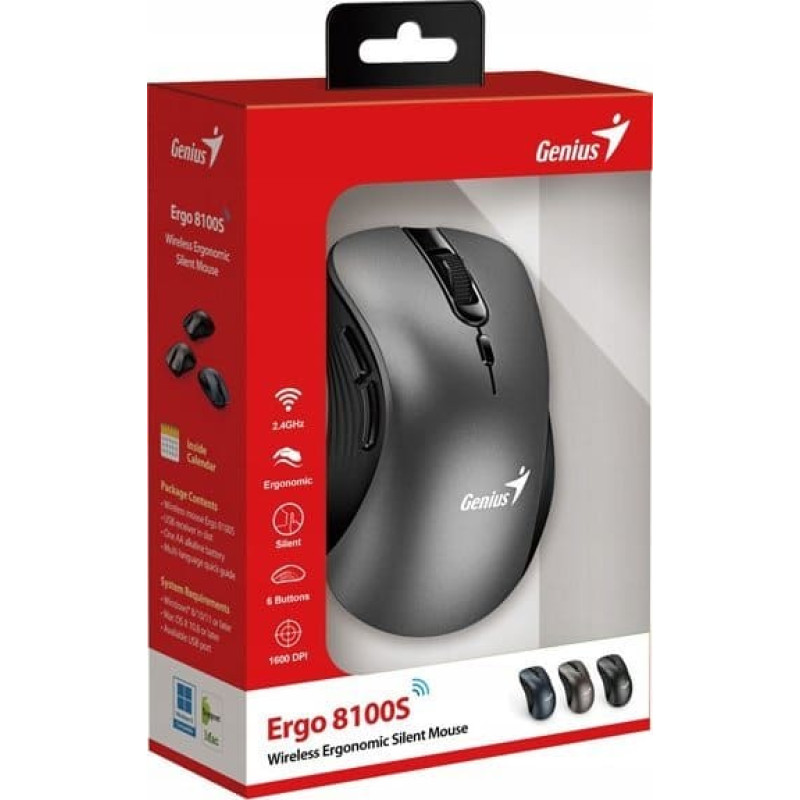 Genius Mysz Genius Mysz bezprzewodowa Genius Ergo 8100S Iron Gray Cichy klik