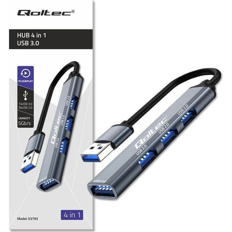 Qoltec HUB USB Qoltec HUB adapter USB 3.0 4w1 | USB 3.0 | 3x USB 2.0