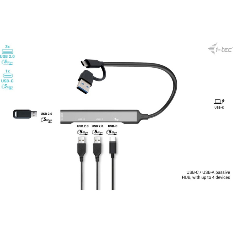 I-Tec CAHUBMETALMINI4 sąsajos šakotuvas USB 3.2 Gen 1 (3.1 Gen 1) Type-A + Type-C 5000 Mbit/ai Sidabras
