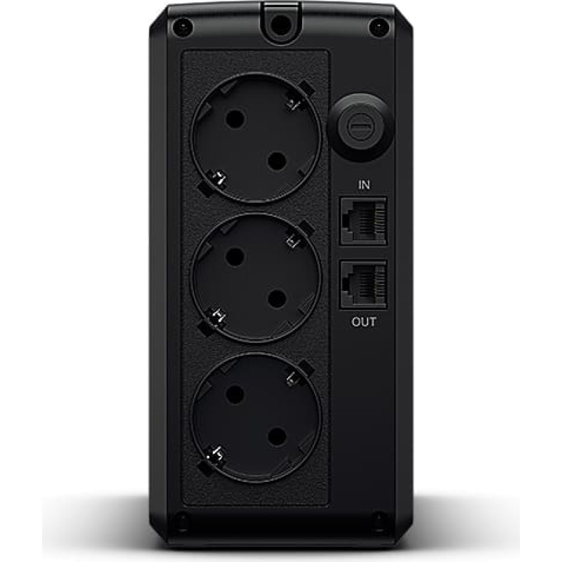 CyberPower UT650EG. UPS topologija: „Line-Interactive“, Išvesties galia (VA): 0,65 kVA, Išvesties galia: 360 W. AC išėjimo tipai: F tipas, Lizų kiekis: 3 AC išvestis(ys / čių). Baterijos technologija: Rūgštinis akumuliatorius (VRLA), Baterijos įkrovimo laikas: 6 h. Forma: Tower, Produkto spalva: Juoda, Korpuso medžiaga: Plastikas. Atitikties sertifikatai: RoHS, Sertifikavimas: CE