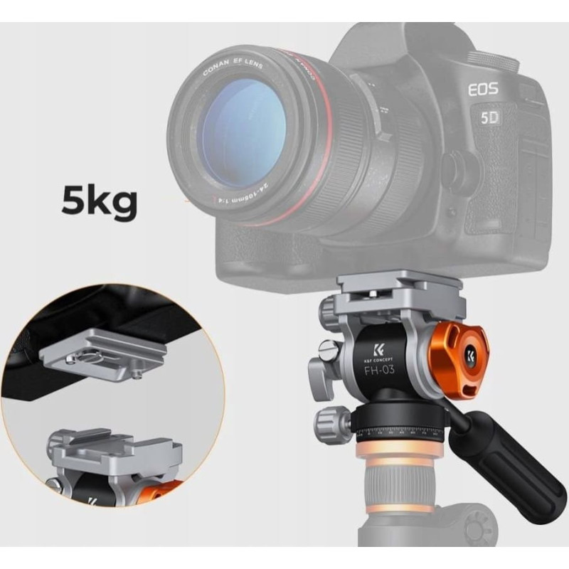 K&F Concept Głowica Kf Głowica Olejowa Video Panoramiczna K&F FH-03 5kg Metal 1/4 3/8 Arca Swiss / FH-03 / KF31.087