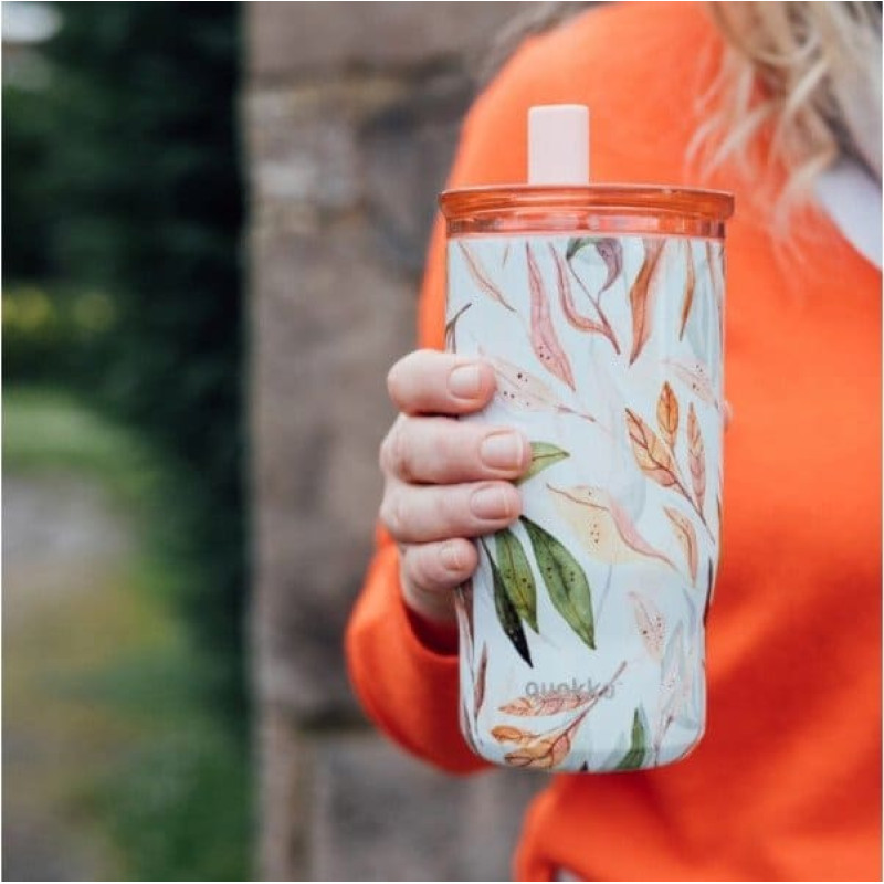 Quokka Mist - Kubek termiczny ze stali nierdzewnej 720 ml ze słomką (Falling Leaves)