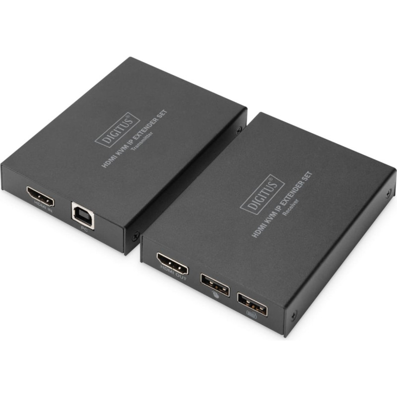 Digitus HDMI KVM IP Extender Set, 150 meters, HDMI extension cable, black, transmitter unit + receiver unit