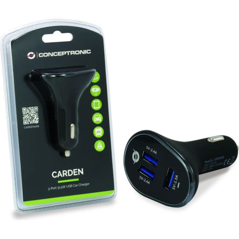 Conceptronic CARDEN06B. Įkroviklio tipas: Automatinis, Maitinimo šaltinio tipas: Cigarų pridegiklis, Įkroviklio suderinamumas: Universalus. Įėjimo įtampa: 12 - 24 V, Išvesties įtampa (maks.): 5 V. Produkto spalva: Juoda | ||||||||||||||||||||||||||||||||||||||||||||||