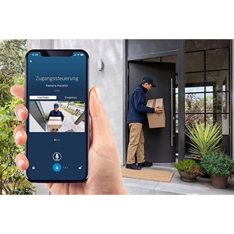 Bosch Q4 2021 DE/AT. Gaminio tipas: Išmanusis durų užraktas, Produkto spalva: Balta. Plotis: 150 mm, Ilgis: 58 mm, Aukštis: 60 mm. Pakuotės plotis: 198 mm, Pakuotės gylis: 188 mm, Pakuotės aukštis: 81,5 mm