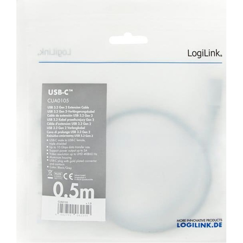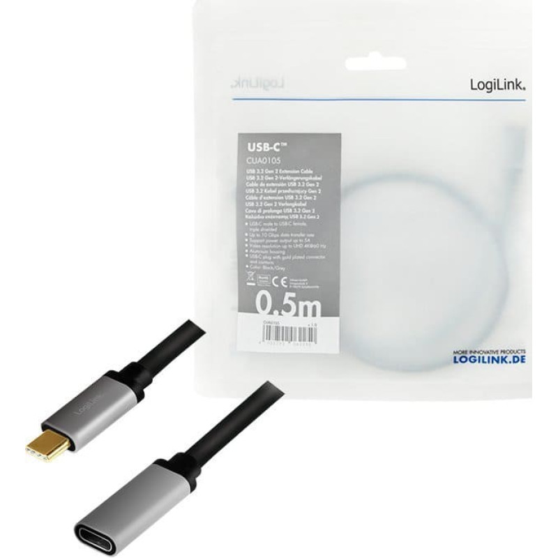 Logilink USB cable LogiLink USB-C - USB-C 0.5 m Black and grey (CUA0105)