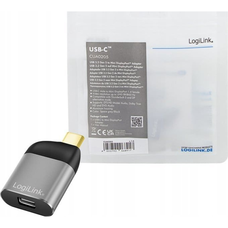 Logilink CUA0205 Adapter USB typu C USB-C/M na mDP/F 8K aluminium czarny/szary