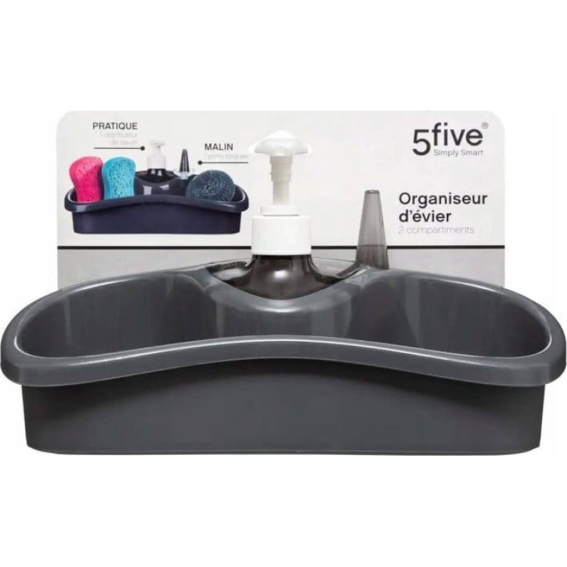 5Five Dozownik do mydła 5five Zestaw do mycia naczyń z miejscem na gąbki i dozownikiem na płyn, kolor czarny