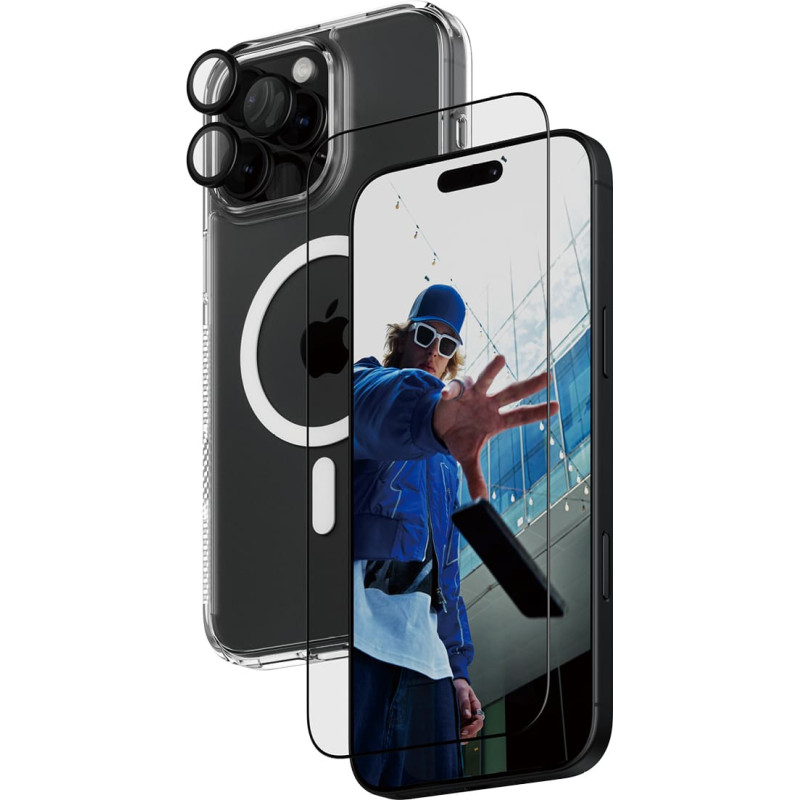 PanzerGlass ® 3-in-1 Protection Bundle iPhone 16 Pro Max. Modelio suderinamumas: Apple, Suderinamumas: Apple - iPhone 16 Pro Max. Sausas naudojimas. Apsaugos ypatybės: Atsparus įbrėžimams, Atsparus smūgiams. Medžiaga: Grūdintas stiklas, Polietileno tereftalatas (PET), Silikonas, Produkto spalva: Permatomas. Kiekis pakuotėje: 1 vnt