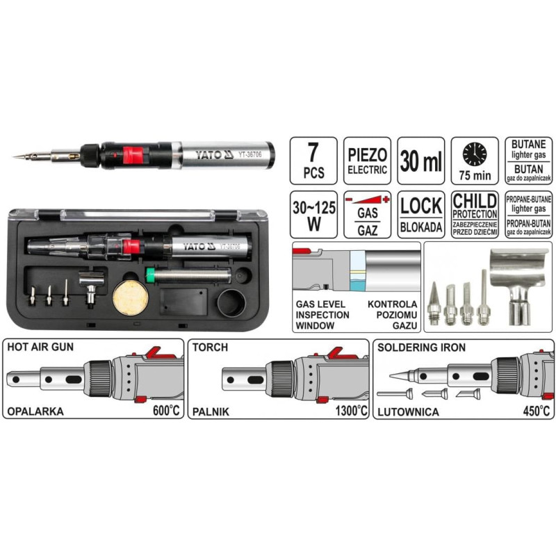 Yato LUTOWNICA GAZOWA 3w1 + AKCESORIA 36706