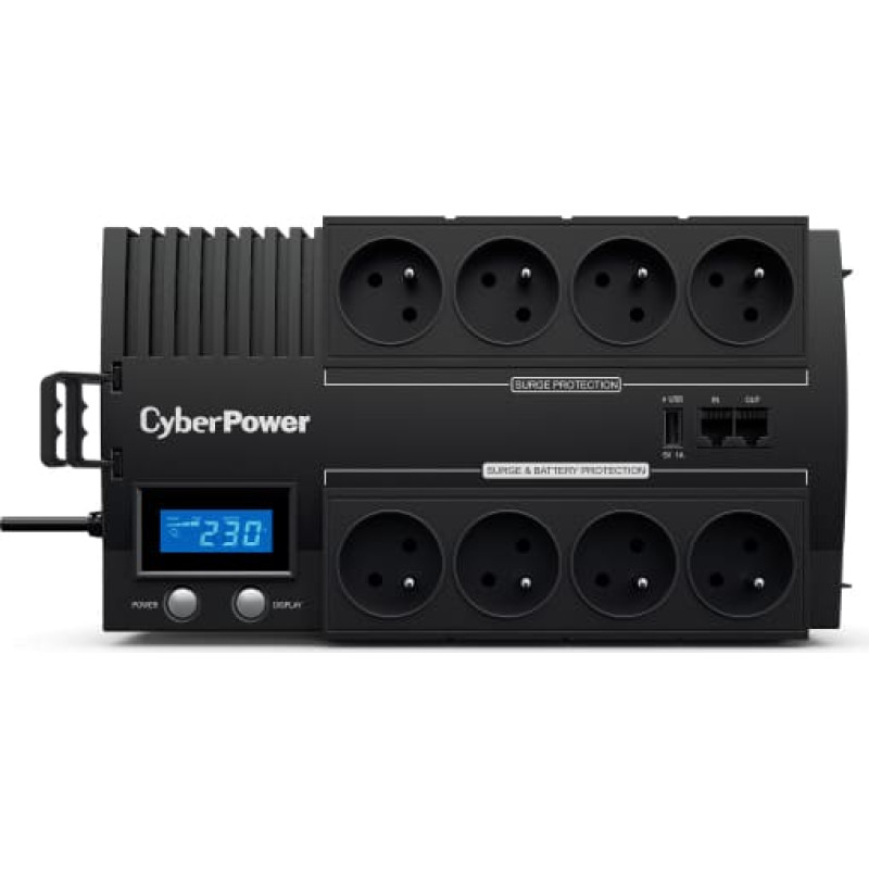 CyberPower BR1000ELCD-FR. UPS topologija: „Line-Interactive“, Išvesties galia (VA): 1 kVA, Išvesties galia: 600 W. AC išėjimo tipai: E tipas, Lizų kiekis: 8 AC išvestis(ys / čių). Baterijos technologija: Rūgštinis akumuliatorius (VRLA), Tipiško laikino maitinimo trukmė pilna apkrova: 1 min, Tipiško laikino maitinimo trukmė pusei apkrovimo: 6 min. Forma: Kompaktiškos, Produkto spalva: Juoda, Korpuso medžiaga: Plastikas. Atitikties sertifikatai: RoHS, Sertifikavimas: CE | ||||||||||||||||||||||||||||||||||||||||||||||||||||||||||||||||||||||||||||||||||||||||||||