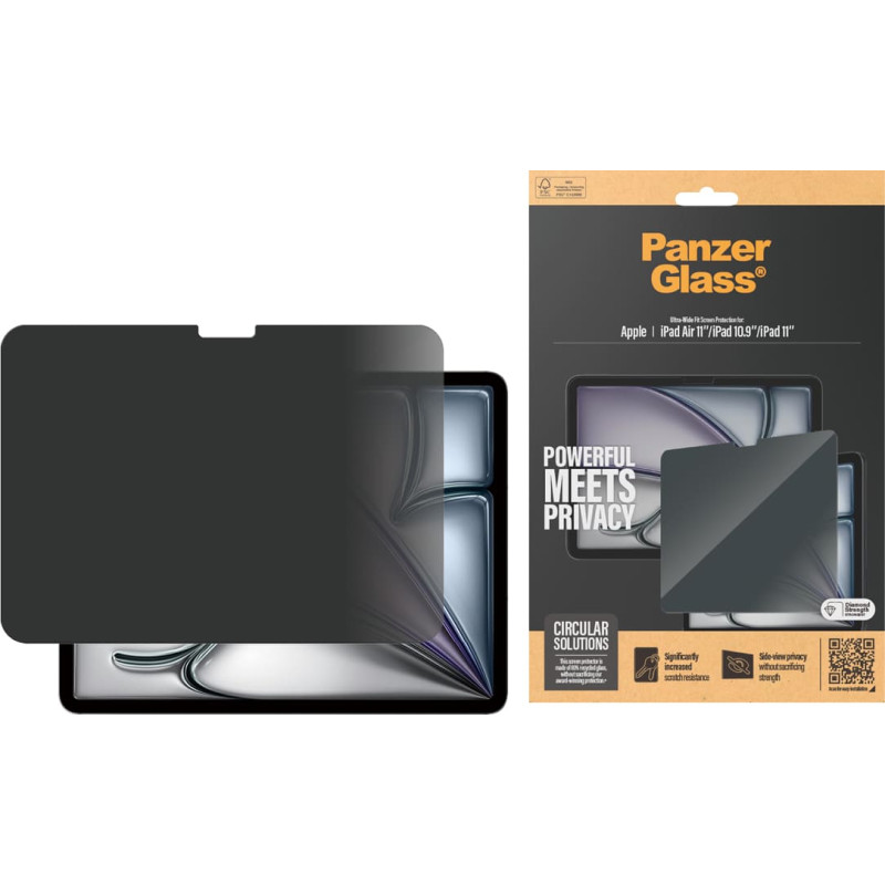 PanzerGlass ® Privacy Screen Protector iPad Air 11'' (2025-2024) | iPad 10.9'' (2022)| Ultra-Wide Fit. Modelio suderinamumas: Apple, Suderinamumas: Apple - iPad Air 11" (2024), Apple - iPad 10.9" (2022), Apple - iPad Air 11" (2025), Apple - iPad.... Sausas naudojimas. Apsaugos ypatybės: Atsparus įbrėžimams, Atsparus smūgiams. Privatumo filtravimo funkcija, Medžiaga: Grūdintas stiklas, Polietileno tereftalatas (PET), Silikonas, Produkto spalva: Permatomas. Kiekis pakuotėje: 1 vnt