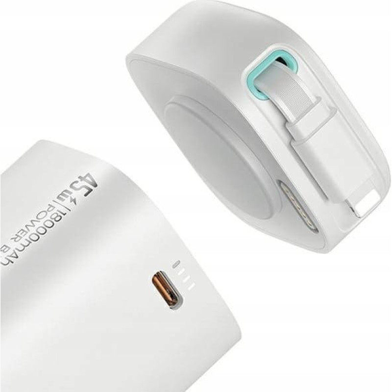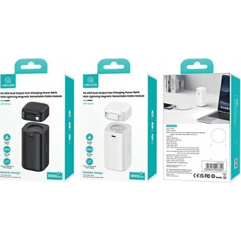 Usams Powerbank Usams USAMS Powerbank ze zwijanym kablem Retractable Lightning 18000 mAh PD45W Fast Charge XMF Series biały/white 20KCD21702 (US-CD217)