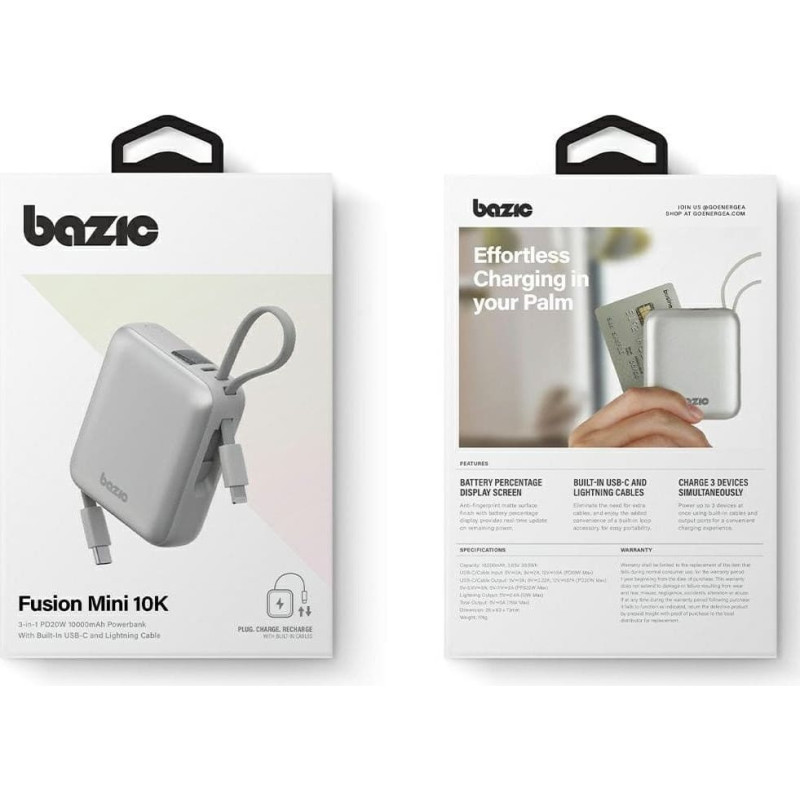 Energea PowerBank 3w1 Bazic Fusion Mini 10000mAh kabel USB-C/Lightning szary
