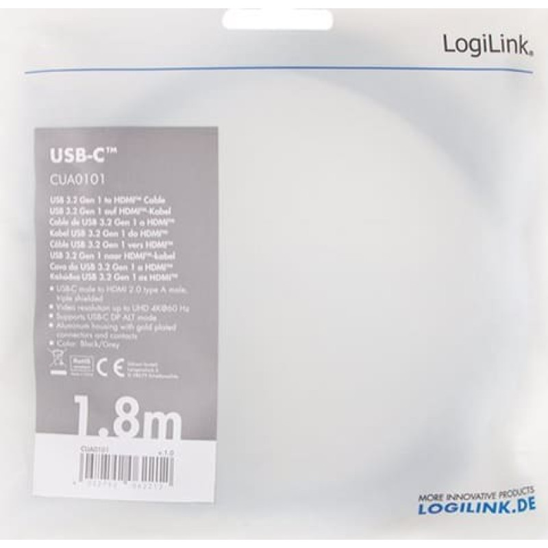 Logilink USB cable LogiLink USB-C - HDMI 1.8 m Black and silver (CUA0101)