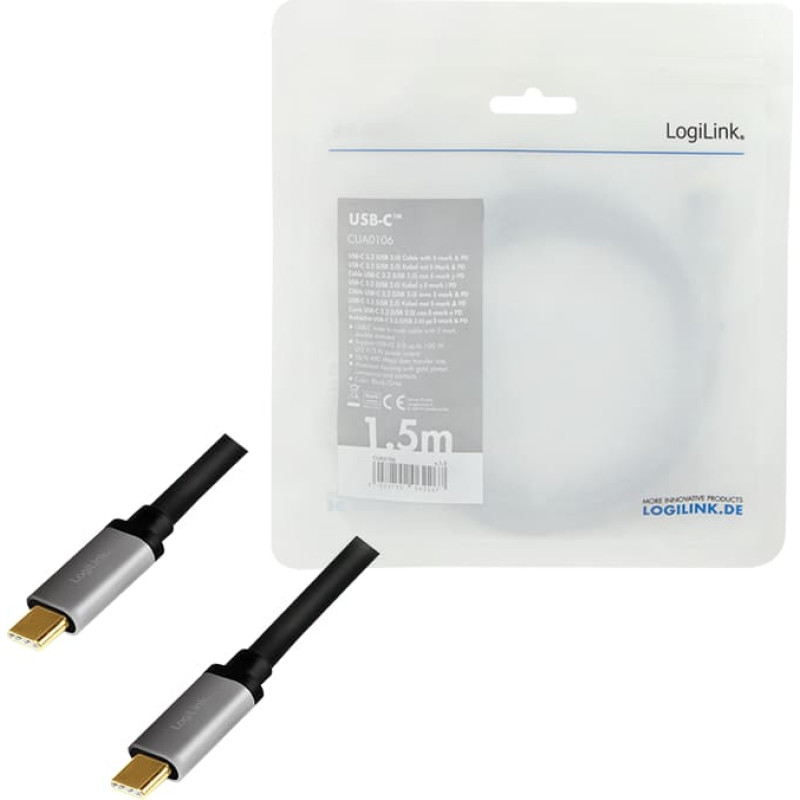 Logilink USB cable LogiLink USB-C - USB-C 1.5 m Black and silver (CUA0106)