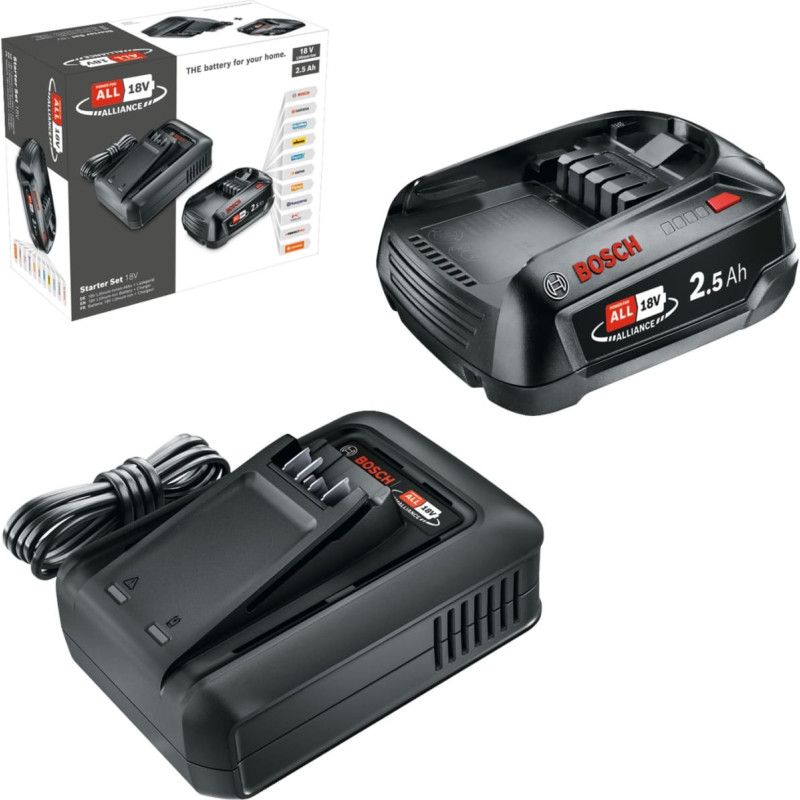 Bosch DIY & Garden Cordless Starter Set 18V 1x 2.5Ah + Quick Charger AL 18V-44 black, Li-ion battery 2.5Ah, POWER FOR ALL ALLIANCE