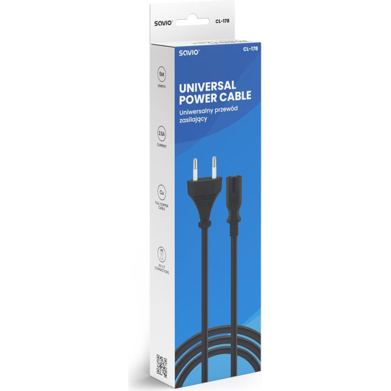 Savio CL-178 Kabel zasilający 2pin, 5m