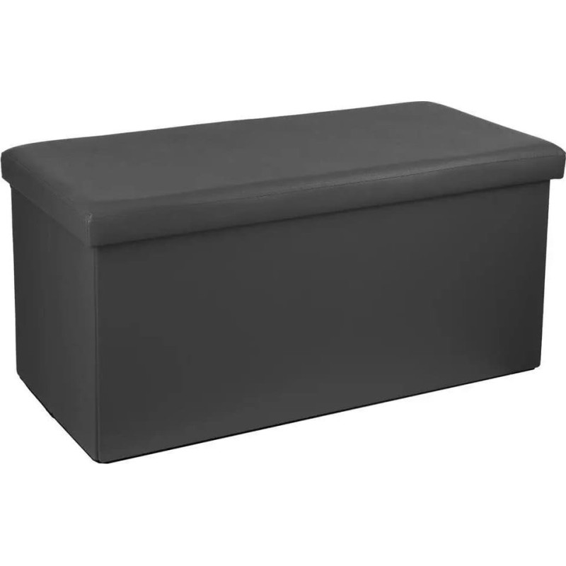 Atmosphera Duża pufa ze schowkiem w kolorze ciemnoszarym, gładka pufa ze skóry ekologicznej, pufa do przedpokoju