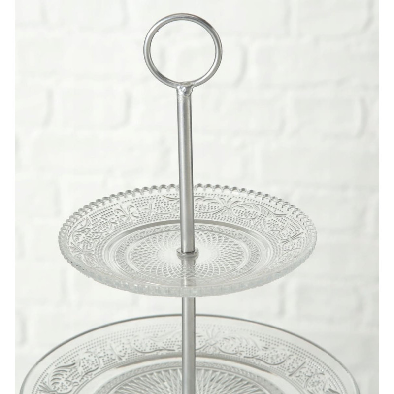 Boltze Szklana patera z trzema poziomami, RELIEF, 35 cm