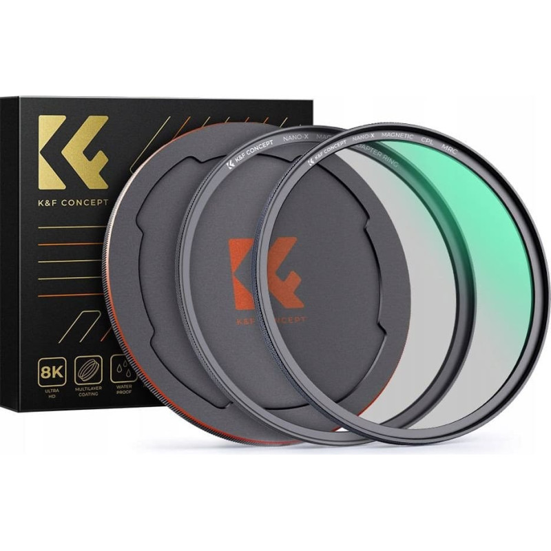 K&F Concept Zestaw 3w1 Filtr Polaryzacyjny Cpl Pierścień Magnetyczny Dekielek K&f 55 Mm / Sku.1702