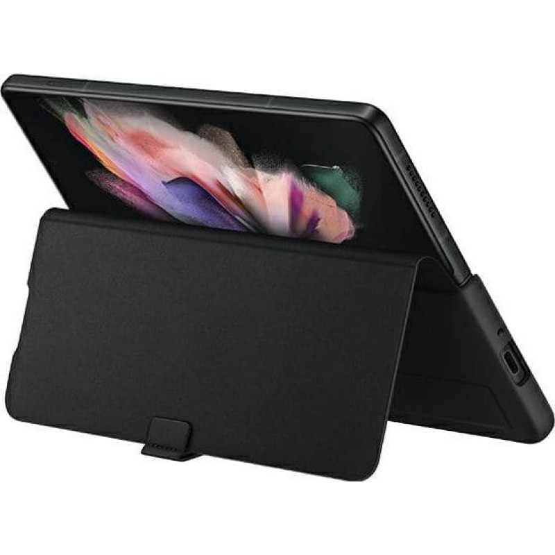 Samsung EF-FF926. Dėklo tipas: Atlenkiamas dėklas, Modelio suderinamumas: Samsung, Suderinamumas: Galaxy Z Fold3 5G, Didžiausias ekrano dydis: 19,3 cm (7.6"), Paviršiaus nudažymas: Monochromatinis, Produkto spalva: Juoda, Desktop stendas