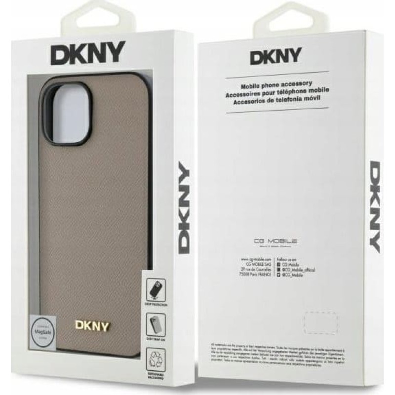 Dkny DKHMP15SPGHLME iPhone 15 6.1" beige/beige hardcase Grained Metal Logo MagSafe