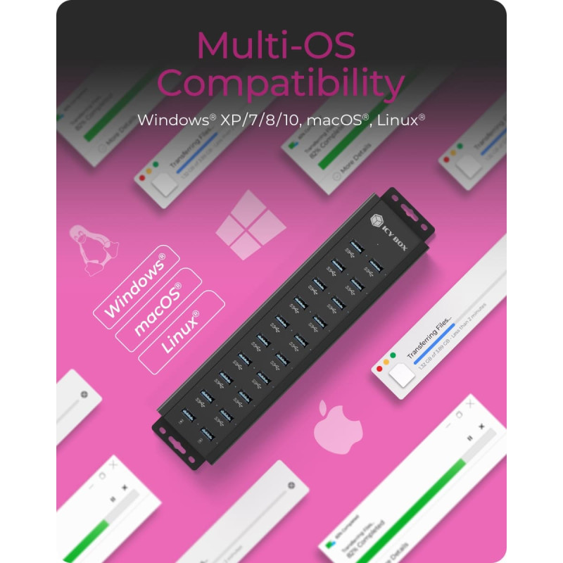 ICY BOX IB-HUB1720-U3. Lizdo sąsajos: USB 3.2 Gen 1 (3.1 Gen 1) Type-A. Produkto spalva: Juoda, Korpuso medžiaga: Aliuminis, LED indikatoriai: Access, Energija. Maitinimo tipas: USB, Maitinimas: 15 W. Plotis: 65 mm, Ilgis: 248 mm, Aukštis: 30 mm. Paketo svoris: 1,28 kg