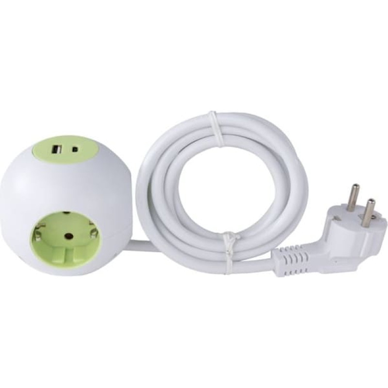 REV PowerGlobe Steckdosenwürfel 4-fach USB weiß-gr.1,4m015408112