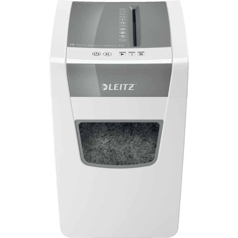 Leitz IQ Slim Office P-4. Smulkinimo tipas: Kryžminis, Darbo plotis: 22 cm, Smulkinimo dydis: 4 x 28 mm. AC įėjimo įtampa: 220 - 240 V, AC įėjimo dažnis: 50 / 60 Hz, Srovė: 0,8 A. Sertifikavimas: TÜV SÜD, GS, CE. Plotis: 255 mm, Ilgis: 370 mm, Aukštis: 375 mm