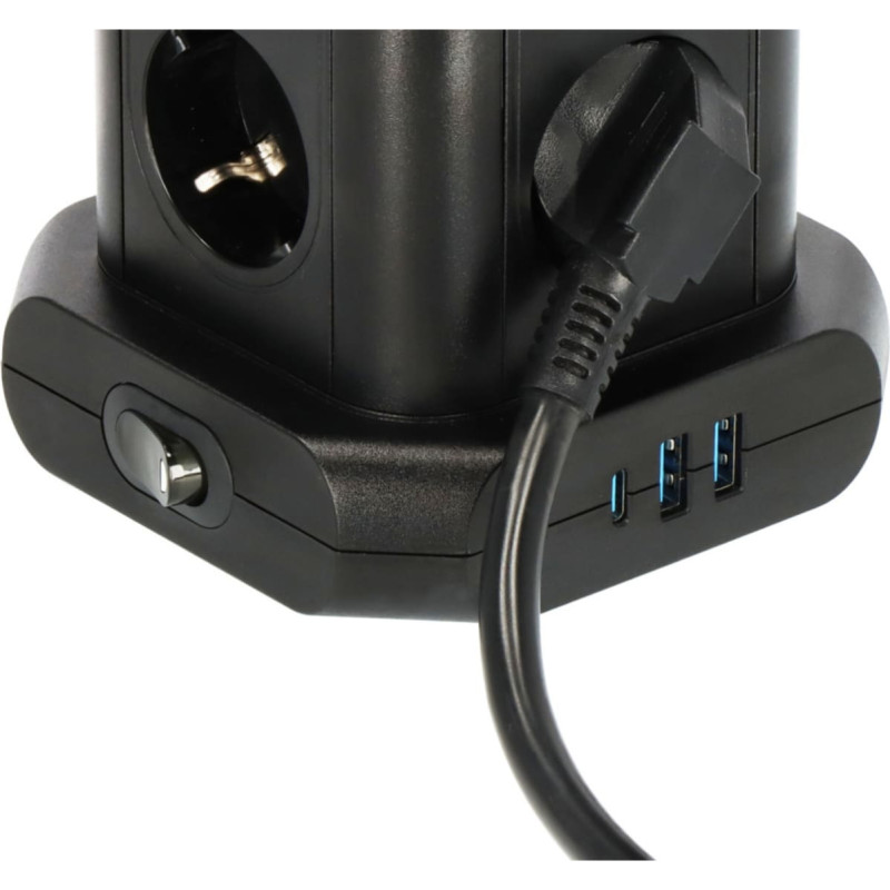 Brennenstuhl 8-way power strip tower, 2x USB-A, 1x USB-C, black power strip, 2 meter cable, with safety switch
