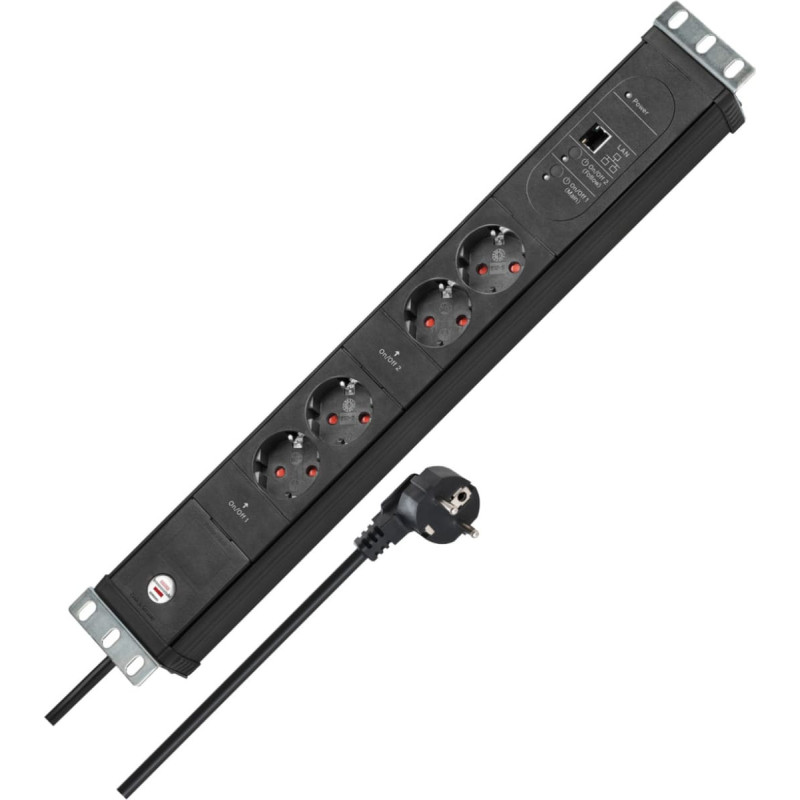 Brennenstuhl Premium-Web-Line V3 Internet power strip 19" 4-way, 2 Main + 2 Follow black, 1.5U, 3 meter cable, Main-Follow function, LAN connection