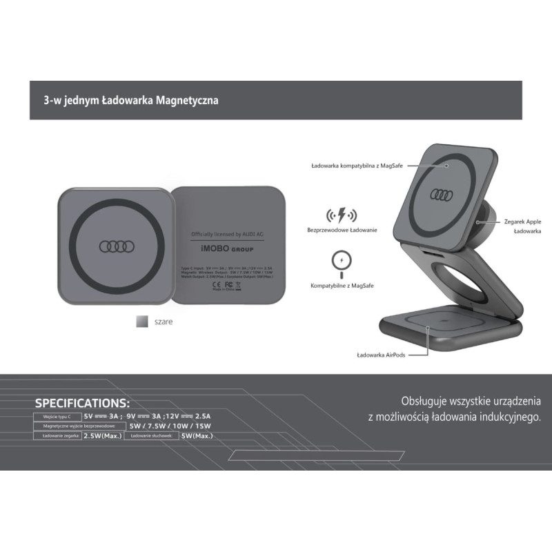 Audi Audi składana ład. indukcyjna 3w1 szary/grey Big Logo AU-MWC3IN1-GT/D1-GY