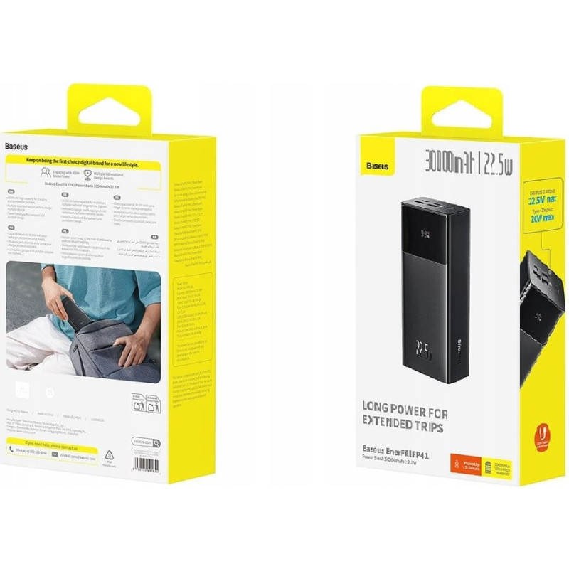 Baseus Powerbank Baseus EnerFill FP41 30000mAh 22.5W z kablem Baseus Simple USB-A - USB-C 3A 30cm - czarny