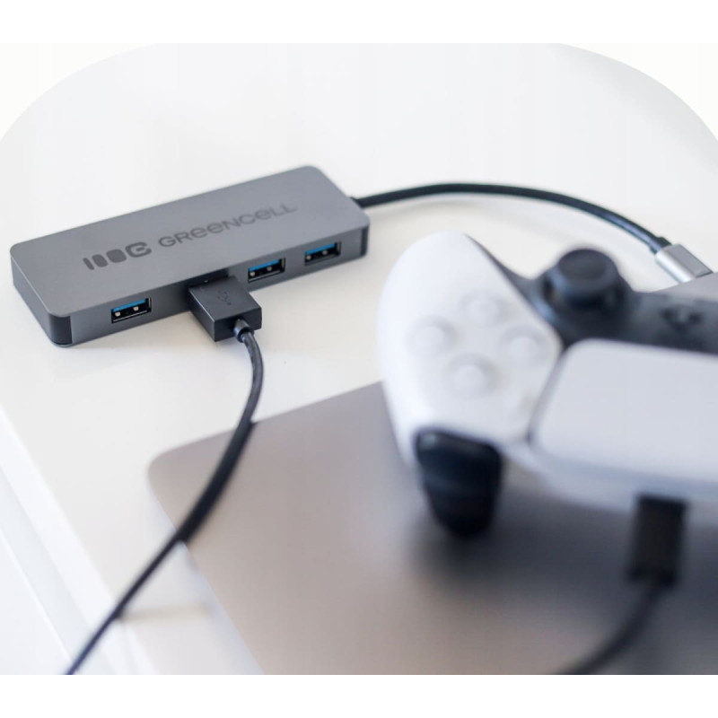 Green Cell Adapter Basic HUB Greencell USB-C 4in1 (4×USB-A 3.0) – szybki transfer do 5 Gb/s, aluminiowa obudowa