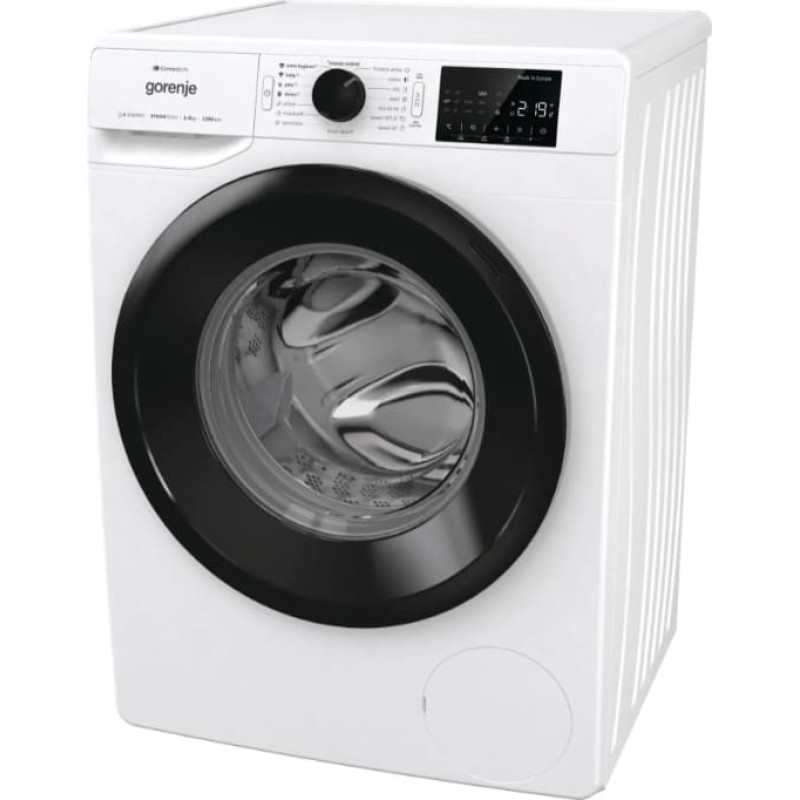 Gorenje Washing machine | WPNEI82A1SWIFI | Energy efficiency class A | Front loading | Washing capacity 8 kg | 1200 RPM | Depth 55 cm | Width 60 cm | Display | LED | Steam function | White