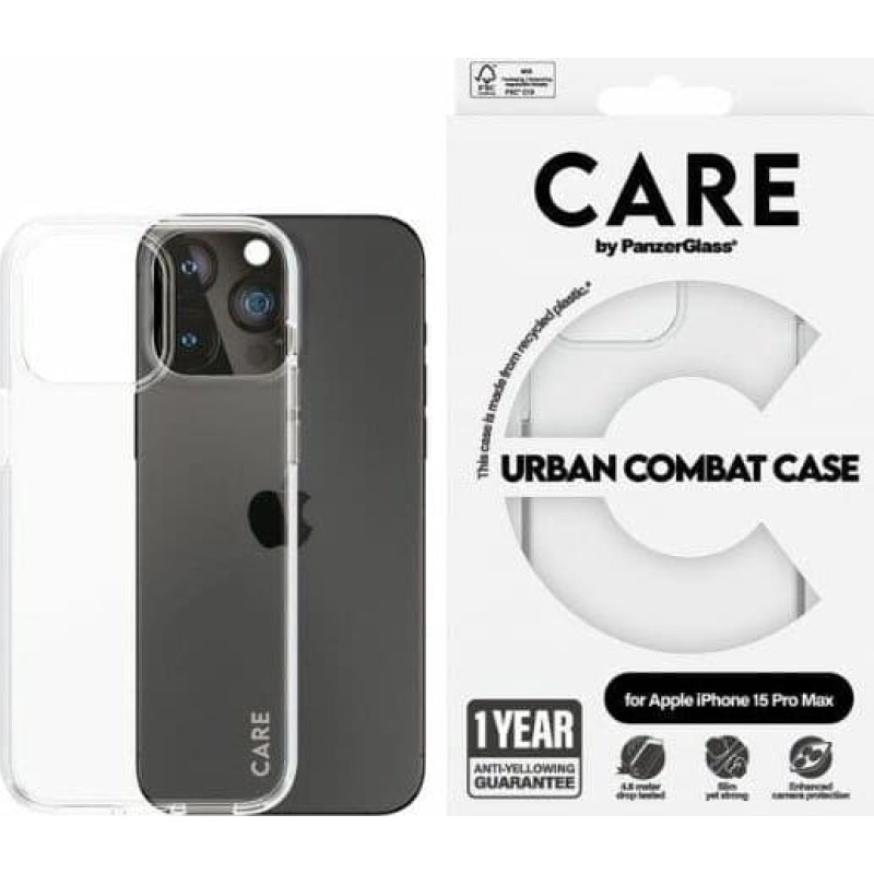 PanzerGlass CARE by ® Flagship Case Transparent Urban Combat w. Clear Frame iPhone 15 Pro Max. Dėklo tipas: Dėklas, Modelio suderinamumas: Apple, Suderinamumas: Apple - iPhone 15 Pro Max, Produkto spalva: Permatomas