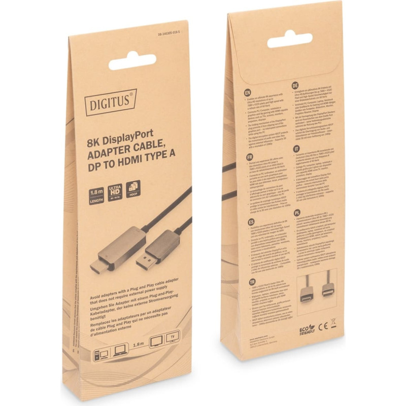 Digitus adapter cable DisplayPort > HDMI 8K (black, 1.8 meters)