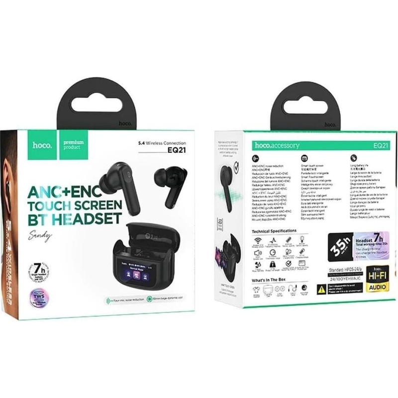 Hoco Słuchawki Hoco EQ21 ANC ENC TWS Czarne z Ekranem Dotykowym LED