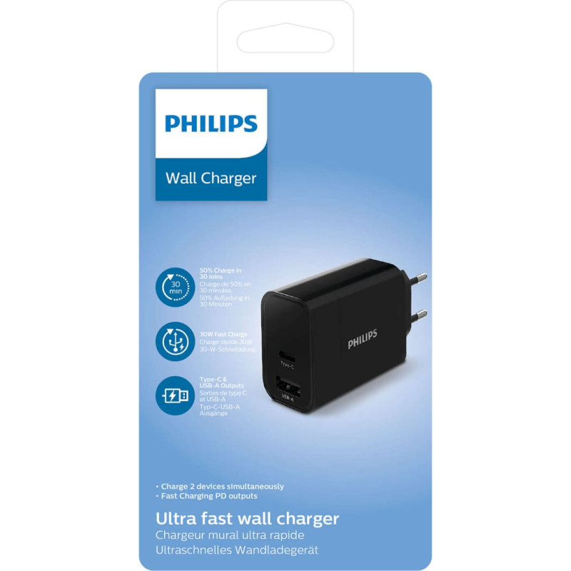 Philips DLP2621/12. Įkroviklio tipas: Vidaus, Maitinimo šaltinio tipas: AC, Įkroviklio suderinamumas: Universalus. Įėjimo įtampa: 100 - 240 V. USB 2.0 portų kiekis: 1, USB tipo C prievadų kiekis: 1, Maitinimo apsaugos ypatybės: Viršijus nuolatinę srovę, Apsauga nuo per didelės įtampos, Apsauga nuo perkaitimo. Produkto spalva: Juoda