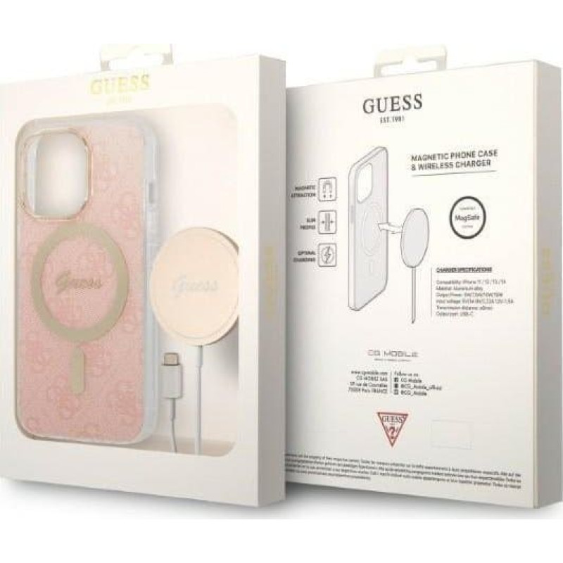 Guess Loader Guess Set Guess case + wireless charger GUBPP13LH4EACSP Apple iPhone 13 Pro pink/pink hard case 4G Print MagSafe