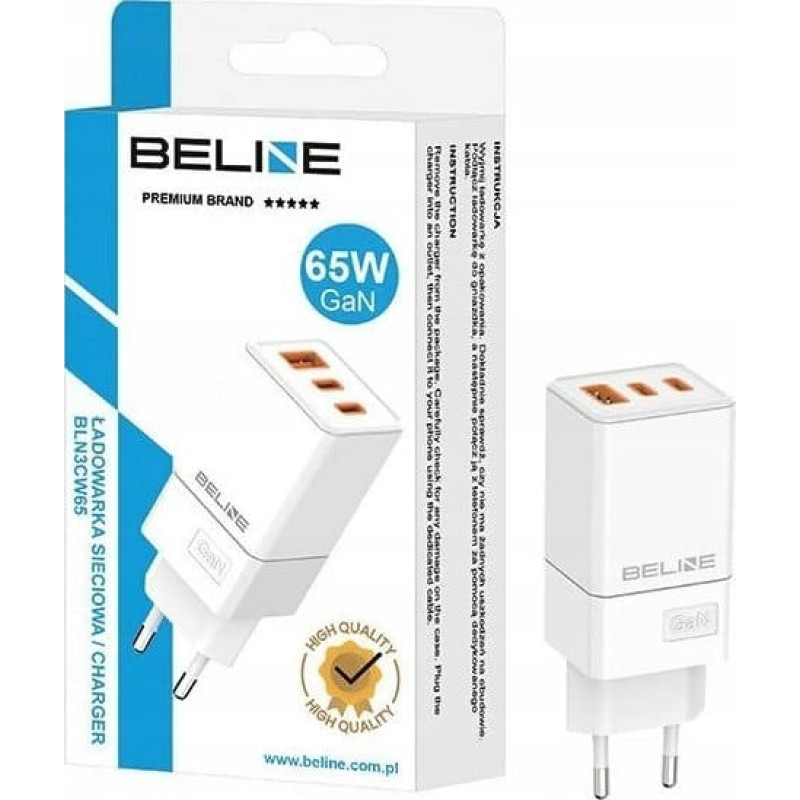 Beline Ładowarka Beline Ładowarka siciowa 65W GaN 2xUSB-C+USB-A bez kabla Biała