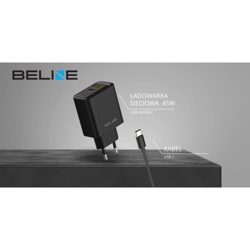 Beline Ładowarka sieciowa Beline 45W GaN USB-A/USB-C + kabel USB-C/USB-C BLN2CB45C czarny