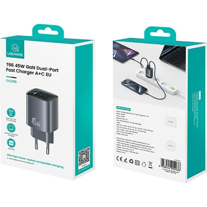 Usams Ładowarka sieciowa USAMS CC290 T66 45W GaN 1xUSB-A 1xUSB-C srebrny