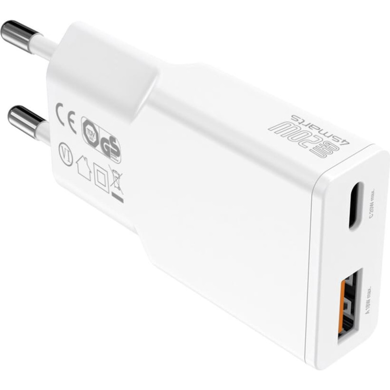 4Smarts Ładowarka sieciowa 4smarts PDPlug Slim Duos 20W GaN USB-C+USB-A + kabel USB-C 1.5m biały